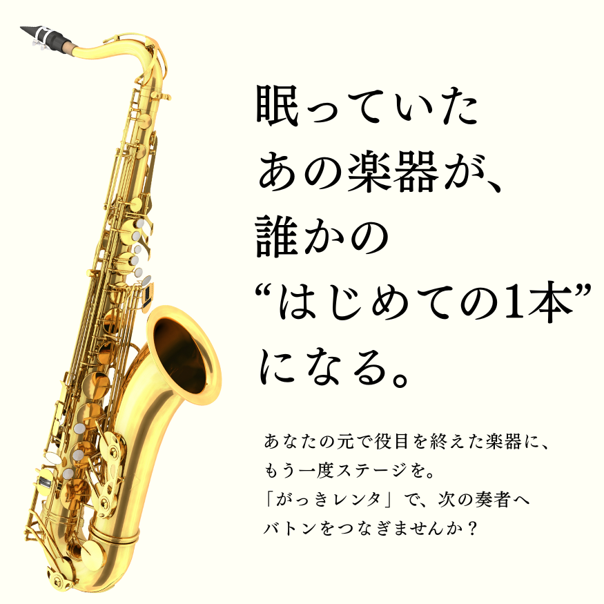 🎷 がっきレンタ とは? がっきレンタは、地域でがんばる吹奏楽部・楽団・音楽クラブを応援する、管楽器専門の格安レンタルサービスです。購入負担の大きい楽器を、無期限で・修理費無料で・低価格でご利用いただけます。 📌 サービスの特徴... -