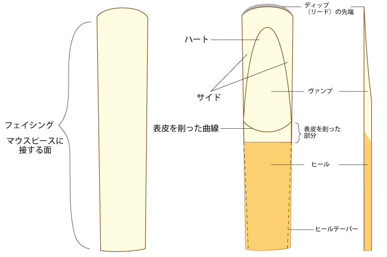 - H…太い音は出るが、反応が悪く、削る候補になるリード